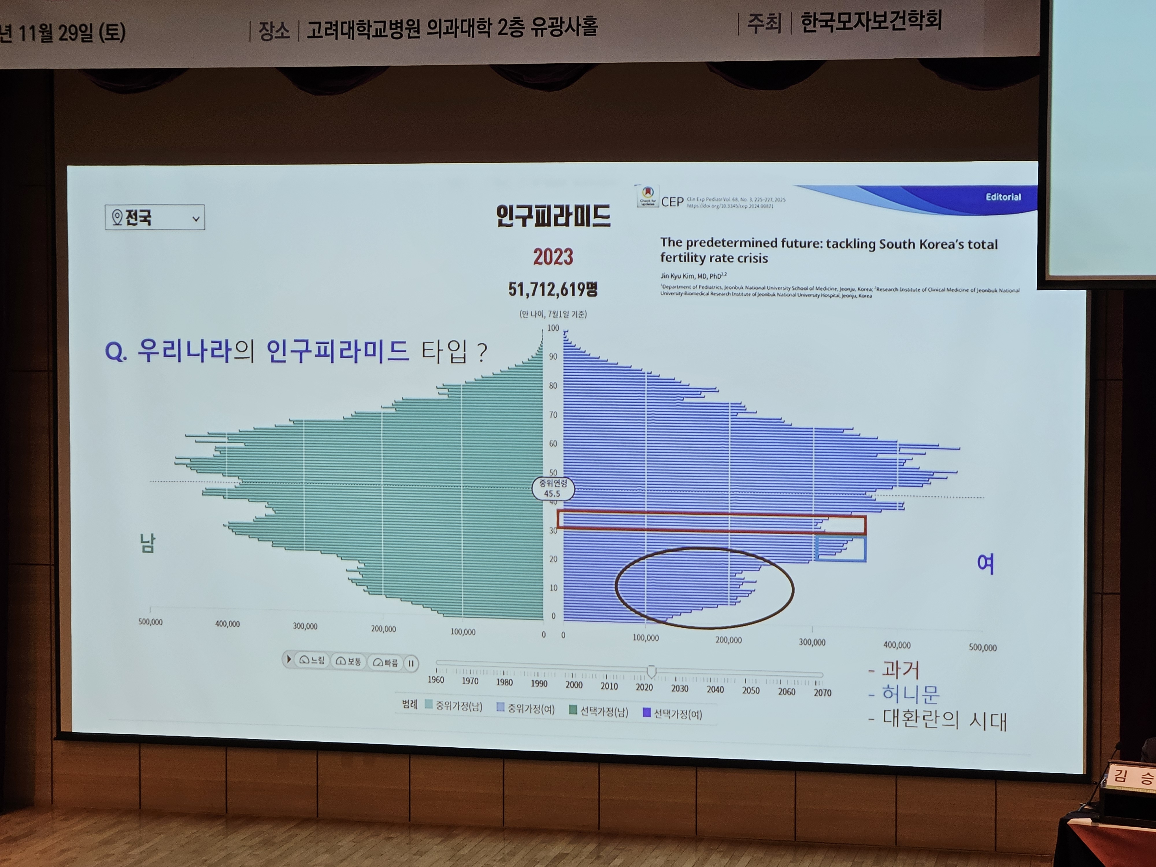 그리고 마지막 세션에서는 지역주산기 의료 현실과 대책에는 국내 저출산환경, 관련 인력 및 인프라공백, 그리고 지역간 격차가 큰 이슈 이었다. 요즘 잠시 반짝하는 출산율 증가는 인구구조상 가임기 여성이 줄어드는 4-5년후 급격히 아마도 연간 20만미만으로 줄어드는 불가피한 정해진 미래, 그리고 출산관련 분만실, 신생아실의 인력 및 인프라 그리고 가중되는 다태아 증가에 따른 미스 매칭으로 인한 뺑뺑이 심화, 그리고 연자로 나선 전북의대 소아청소년과 김진규교수님의 대책안으로 우리 대한민국보다 먼저 겪고 풀어가고 있는 일본과 비교하면 “일본을 보라” 아주 크지도 않은 한 센터(교린대학병원 : MFICU 12병상, NICU 15병상)에 산과의사 38명, 신생아의사가 18명이상이다. 지금 국내는 다양한 네트워크(권역, 지역, 중앙센터)사업을 통해 정부지원을 하고 있지만, 분만수가 인상만으로는 한계가 있으며 국내 병원환경에서 근본적으로 분만실 및 신생아실 인프라 유지 비용을 정부에서 보존하지 않으면 이들의 폐쇄는 늘어날 수밖에 없고 붕괴될 수밖에 없어 보인다.